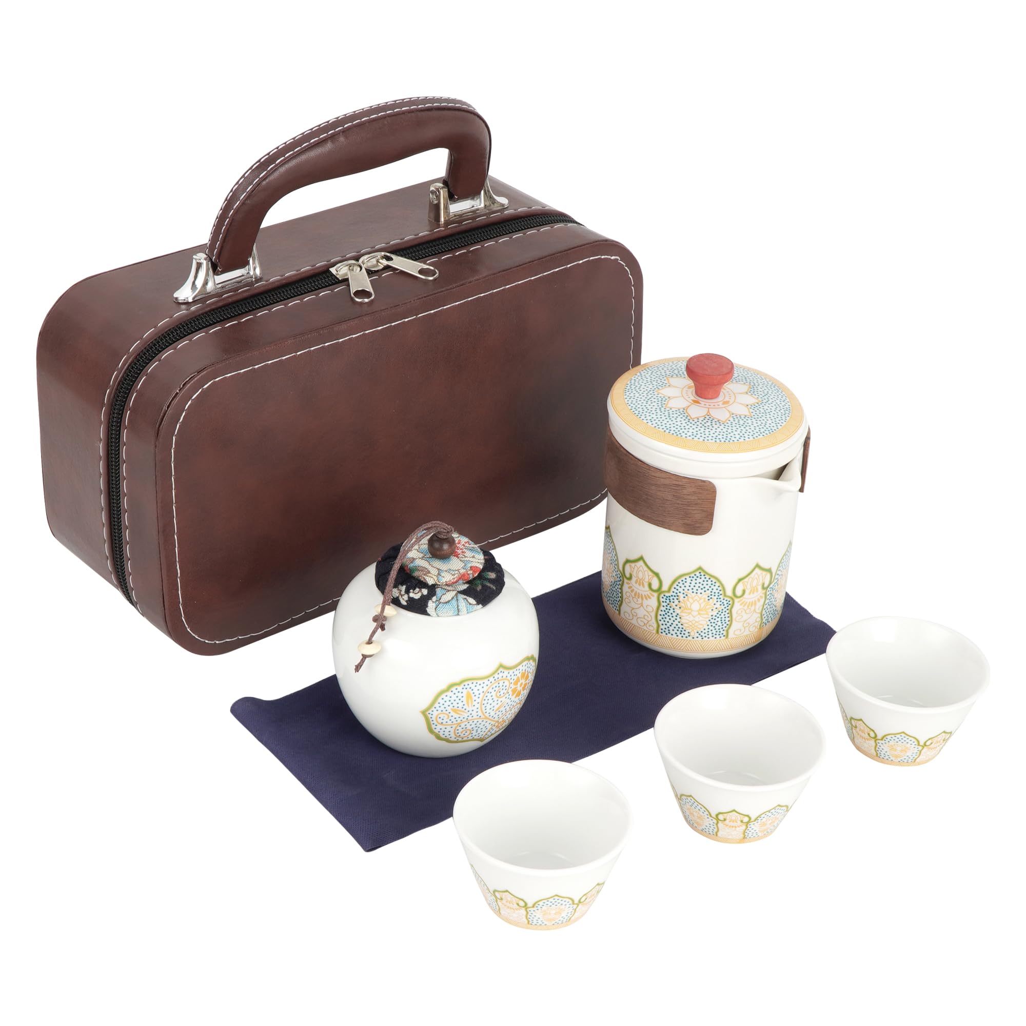 Carry peace with you wherever life leads. This handmade ceramic tea set, adorned with a serene lotus motif, brings together traditional artistry and thoughtful portability. Housed in an elegant leather case, it holds everything you need to create quiet tea moments at home, in nature, or wherever you find stillness.